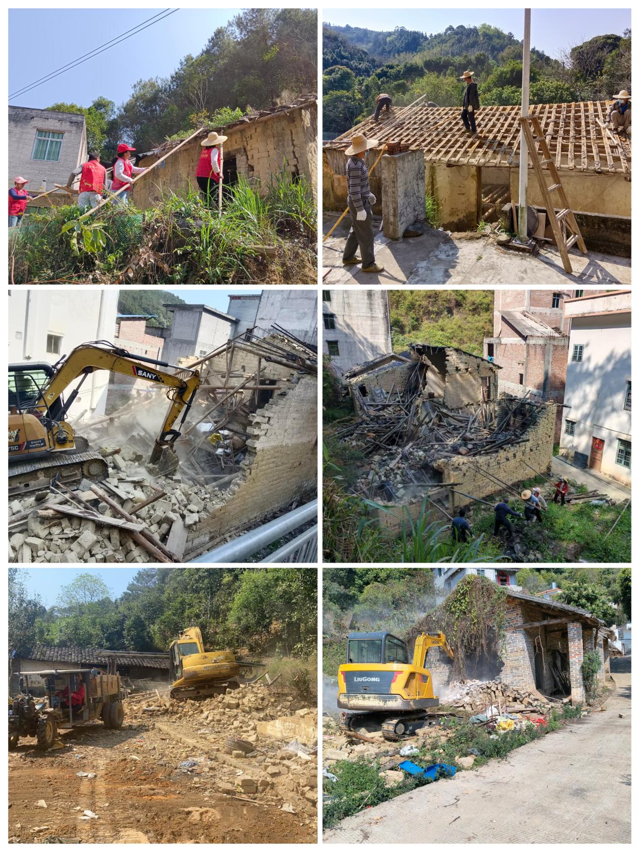 在大會結束后,通門鎮全體駐村(掛社區)團隊迅速深入一線,與村干部并肩作戰,在全鎮12個村(社區)同步開展了清理亂堆放雜物和垃圾積存、清除溝渠池塘中的黑臭淤泥和漂浮物,以及拆除破舊危房和違章建筑等工作。機器的轟鳴聲與人們的喧鬧聲交織在一起,共同繪制出一幅“干群同心,共創偉業”的壯麗圖景。