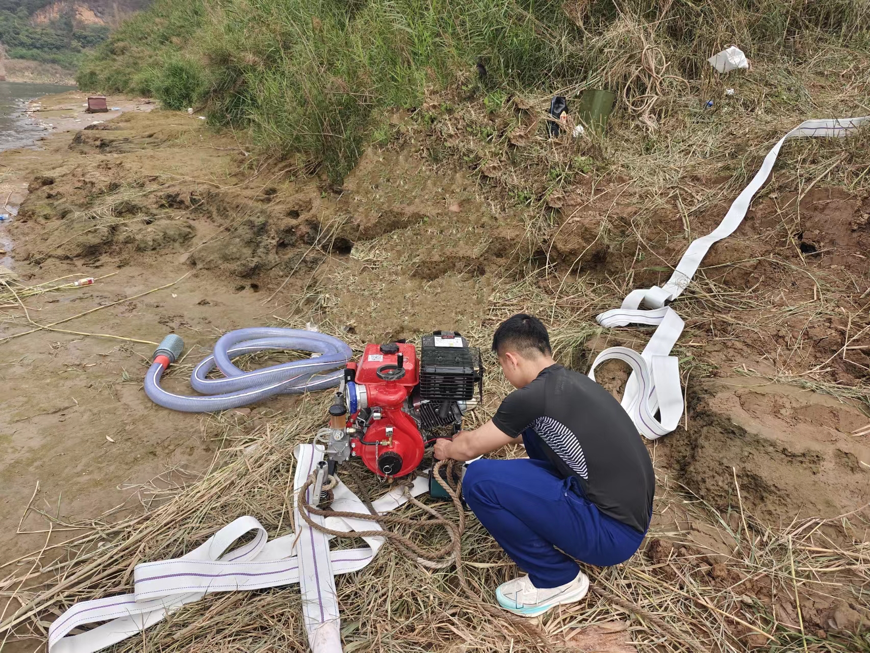 經實地排查,農田灌溉渠道目前已沒有來水,且山塘水位低,目前無法滿足農田灌溉需求。針對這些棘手問題,村黨支部緊急研討,意識到僅靠村內力量遠遠不夠。經過一番集思廣益,決定聯合鎮消防隊從西江河抽水的大膽設想。村黨支部迅速與鎮消防部門取得聯系,詳細闡述冷水村的干旱情況以及對春耕用水的急切需求,爭取抽水設施的調配支持。鎮消防部門高度重視,立即調配抽水設備及專業消防人員,組成抽水抗旱突擊隊奔赴冷水村。