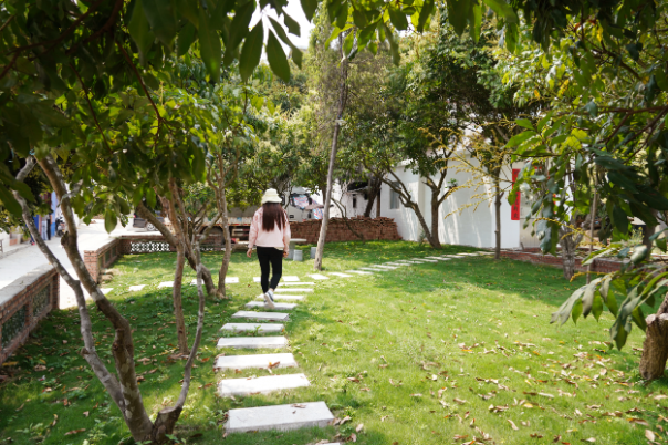 從建城鎮西邊沿山而上,沿途無核黃皮花開正艷、枇杷成熟金黃一片。大山峽谷、森林綠植掩映間的白瓦自然村印入記者眼簾。這里房屋依山而建、道路蜿蜒盤山,青磚綠草間的小公園、小廣場整潔美觀,連接山體村道旋轉紅磚石梯,美化村容村貌的同時,起到固定山體作用。