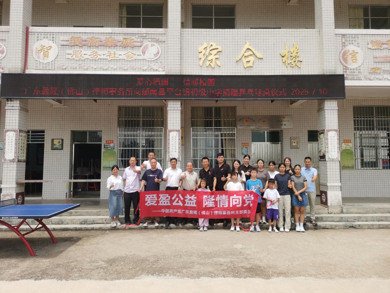 廣東盈隆律師事務所表示,能夠參與此次捐贈活動深感榮幸,律所一直秉持“回饋社會、服務教育”和“以黨建帶所建,興所建,強所建”的理念,積極參與公益事業。此次到郁南縣平臺鎮中學開展幫扶活動,更是體現了盈?。ǚ鹕剑┞伤掷m發揮“愛盈公益”的品牌影響力。未來將以此為契機,繼續支持平臺中學的發展,推動法律知識進校園,開展法律講座和案例講解,幫助學生增強法治意識,樹立正確的是非觀。同時,也歡迎對法律職業感興趣的學生未來加入律所實習,律所將為他們提供成長平臺,助力實現法律夢想。
