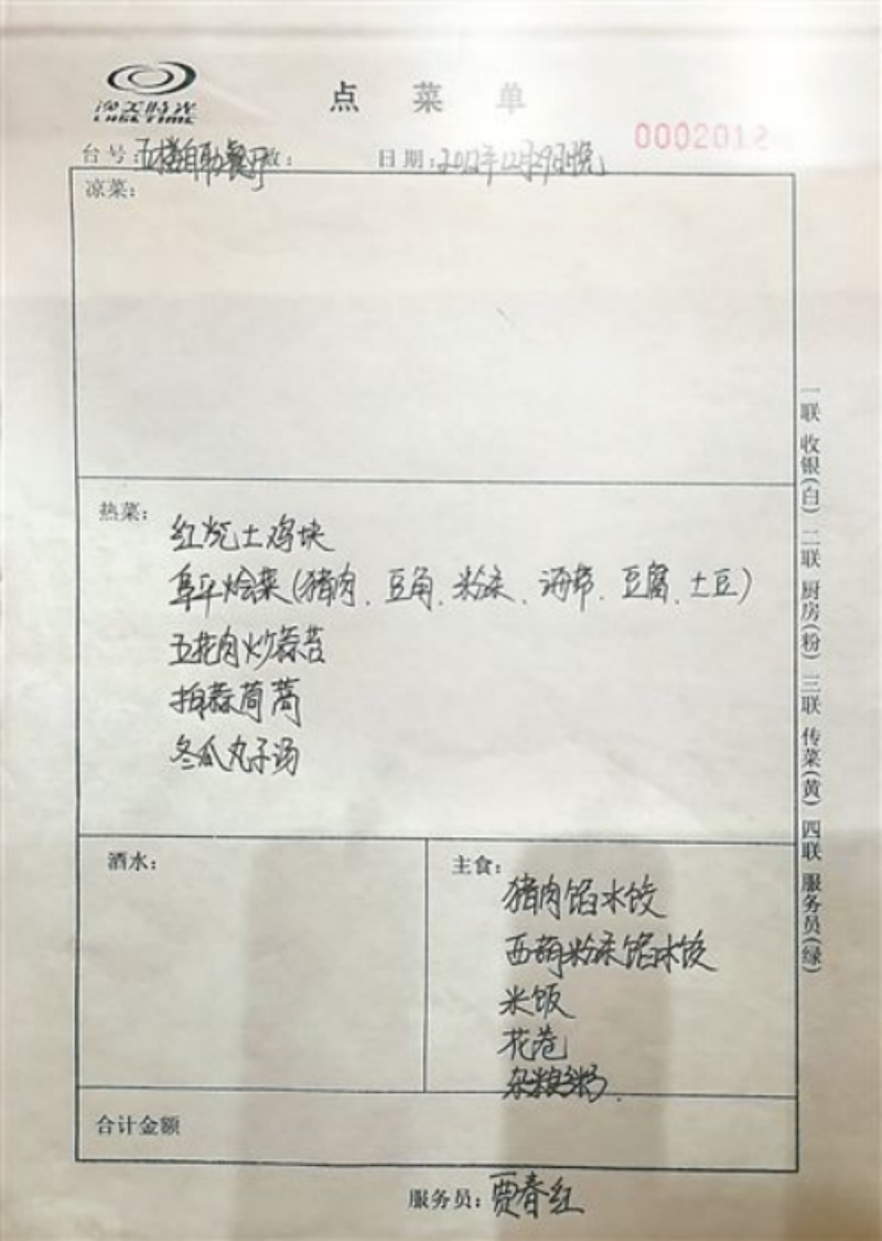 習近平總書記2012年考察河北省阜平縣時的晚餐菜單(復制件)。