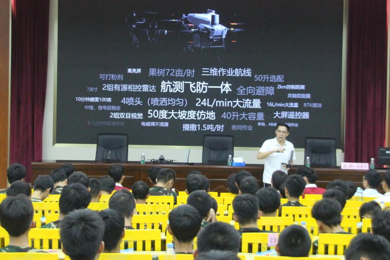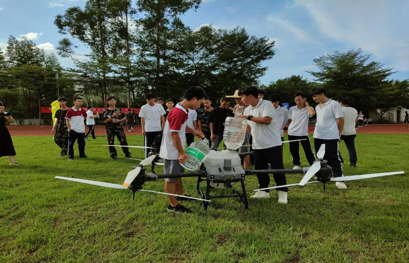 在現代無人機應用推廣活動現場,操作員操控著農業無人機上下前后飛行,演示各種實際作業場景,向在場人員展示了在現代科技手段輔助下的農業管理。職校師生興致勃勃,紛紛向操作員了解無人機的操作方式,體驗農業無人機的飛行作業。