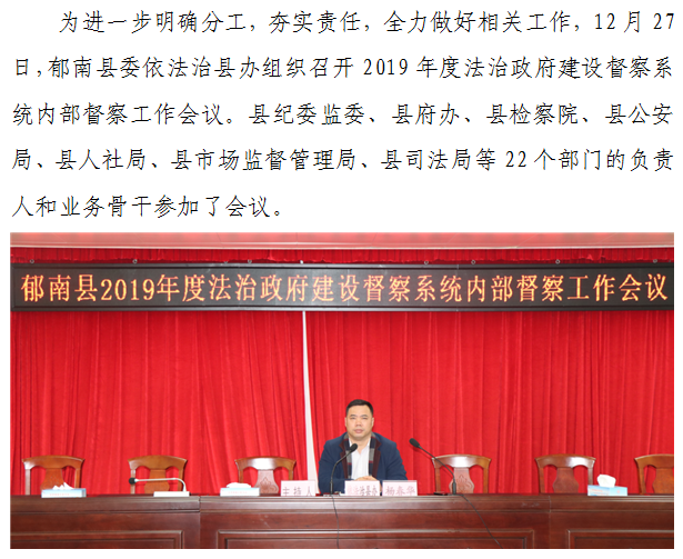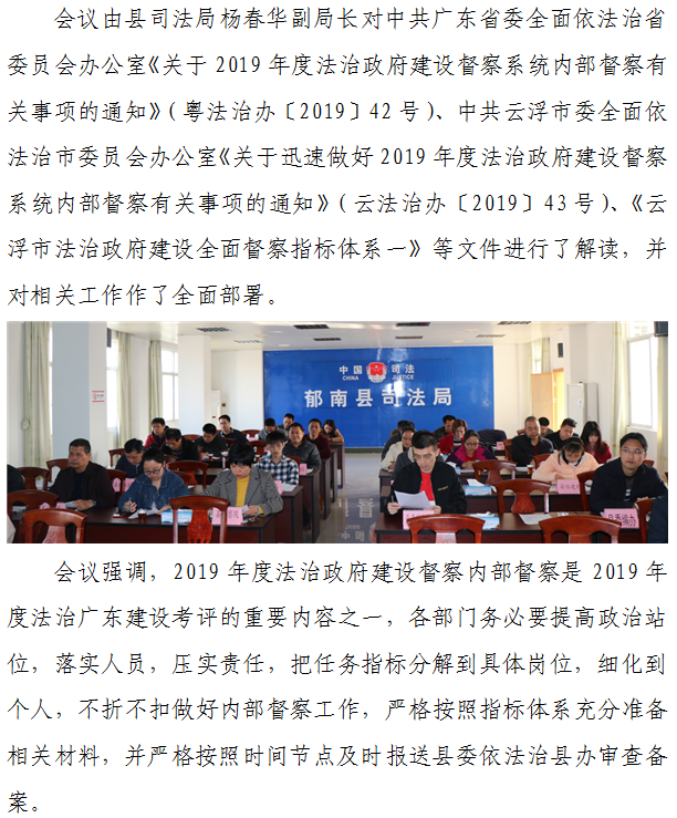 郁南縣委依法治縣辦組織召開2019年度法治政府建設督察系統內部督察工作會議